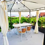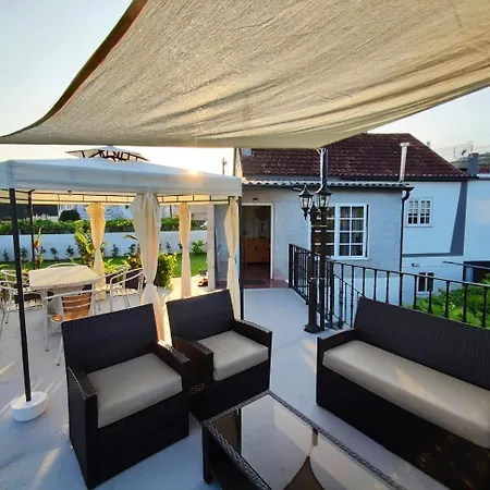 Casa Vacacional Sanxenxo Villa ligt binnen 4 km van de Aguete en nodigt gasten uit om te ontspannen op een patio.